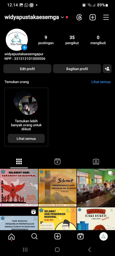 Promosi Perpustakaan 4 Mar,2023 adminTinggalkan komentar Papan Pengumuman Poster Buku Baru Media Sosial Instagram @widyapustakaesemga Brosur Papan Pengumuman Konvensional Jumlah Pengunjung : 360